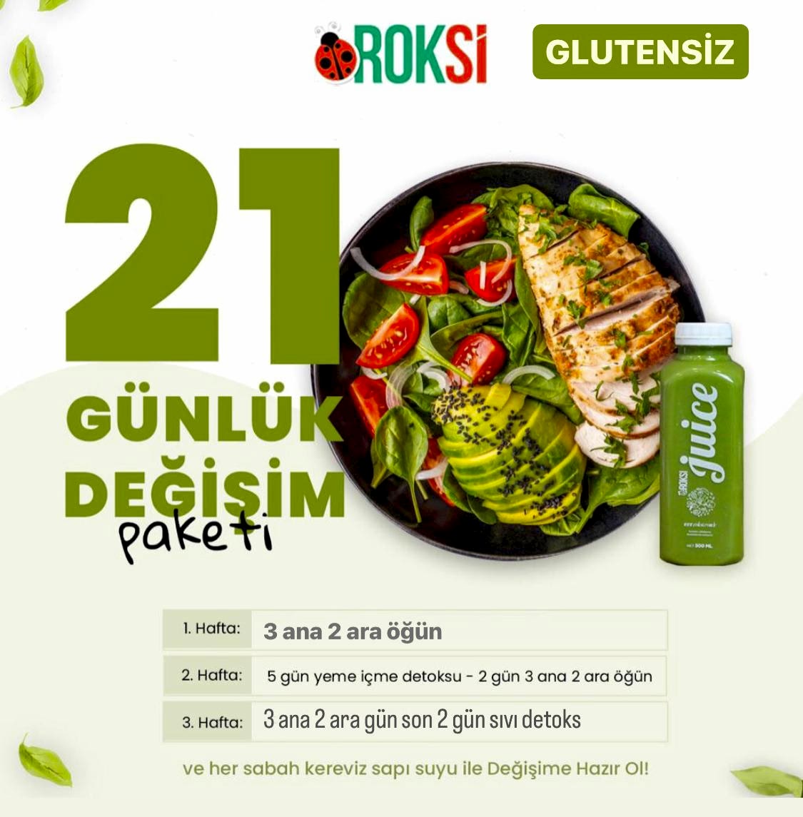 21 Günlük Glutensiz beslenme paketimiz 3 ana 2 ara öğün olarak hazırlanmaktadır. 1200 kaloridir.